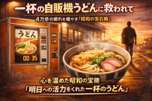 「立ち止まりそうな時、いつも私を温めてくれたのは、自販機から出てくる一杯のうどんでした。それは単なる食事ではなく、明日へ踏み出すための活力源です」