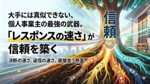 「決断の速さ、返信の速さ、そして直接会う熱量。この圧倒的なスピード感こそが、大手企業には決して真似できない個人事業主の生命線です」