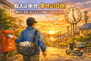 かつては夜22時までギグワークを掛け持ちしていた時期もありましたが、今はポスティング業一本で歩めるようになりました。それは、支えてくださるクライアント様と、健康な体があってこその「5年目の景色」です。