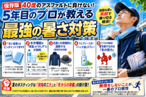 夏のポスティングで最も大切なのは、「今日一日を無事に終えること」です。 今回ご紹介した対策はどれも安価で始められるものばかりですが、その裏には「絶対に届ける」というプロとしての覚悟と、数ヶ月かけて作り上げた体があります。